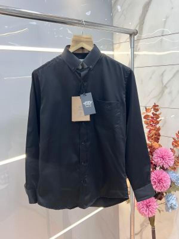 Burberr y Black Premium Imported Embroidered Logo Shirt with custom Branded Button Tagging And Brand Packing 3248