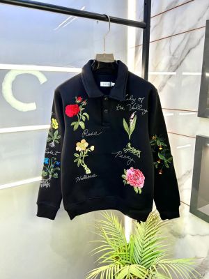 Christian Dio r Imported Allover Embroidery Print Premium Black Sweatshirts F3237-BL